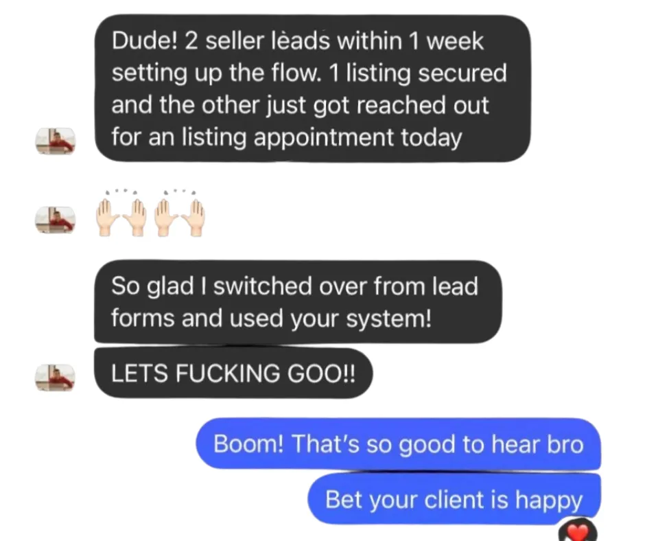 Our primary objective while working together is scaling listing acquisition (because that's where the $$$ is). However we also help with personal branding, buyer acquisition, database reactivation, appointment setting, local SEO, content strategy & so much more!
